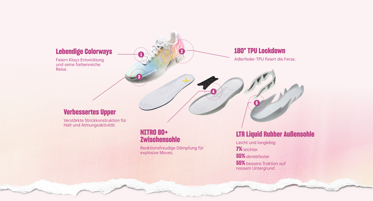 Prismatische Reflexionen im Mittelfußbereich stehen für grenzenlose Kreativität und Klays unerschütterlichen Fokus.