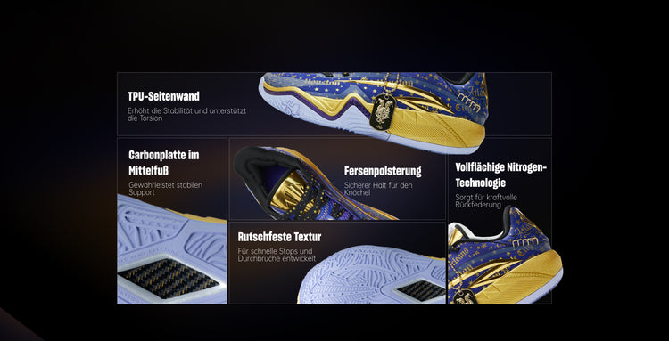 Der Schuh ist in Lila und Gold gehalten und ehrt das Spiel, KAI’s Mentor und die Stadt, die in Lila und Gold gehüllt ist.
