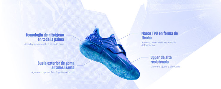 Zonas reforzadas con textura triangular para mayor estabilidad en movimientos explosivos.