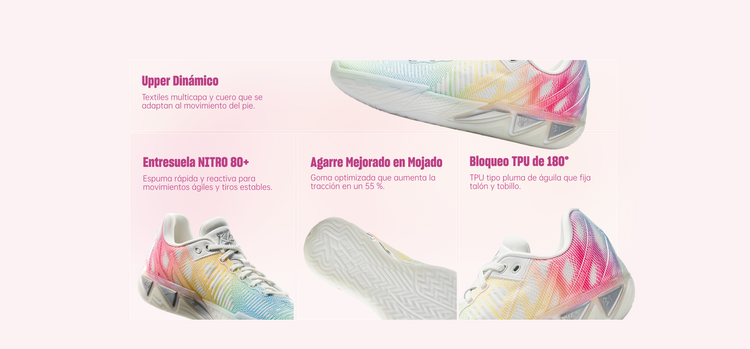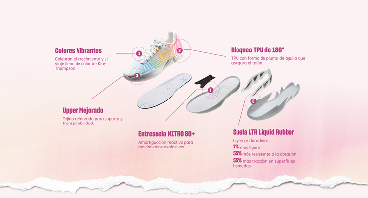 Las zapatillas de baloncesto ANTA KT11 están diseñadas para tiradores en constante movimiento. Con amortiguación reactiva NITRO 80+, sujeción del talón con TPU de 180° y una suela ligera de goma líquida, ofrecen velocidad explosiva, estabilidad y precisión — inspiradas en el juego de Klay Thompson.