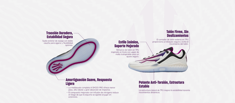 El ANTA KAI 2 SPEED ofrece una aceleración rápida con amortiguación A-SHOCK PRO, tracción de doble caucho y soporte inspirado en Kyrie. Diseñado para cortes rápidos y control total en toda la cancha.