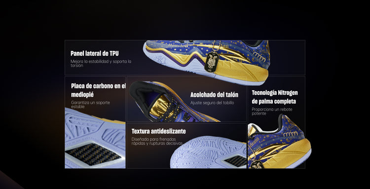 El zapato está cubierto de púrpura y dorado, en honor al juego, al mentor de KAI y a la ciudad envuelta en estos colores.