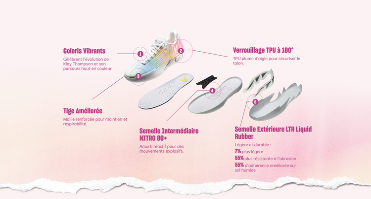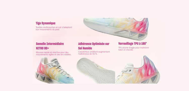 Les chaussures de basketball ANTA KT11 sont conçues pour les shooteurs en mouvement. Dotées de l’amorti réactif NITRO 80+, d’un maintien du talon en TPU à 180° et d’une semelle extérieure légère en caoutchouc liquide, elles offrent vitesse explosive, stabilité et précision — façonnées par le jeu de Klay Thompson.