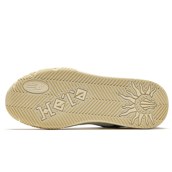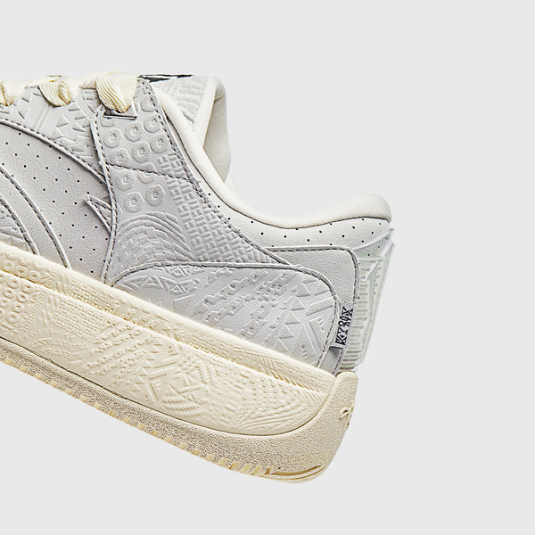 Stone Craft, Ink of KAIro et Papyrus White incarnent une polyvalence intemporelle, enracinée dans l’héritage et la stabilité. Les associations de suède et de cuir dans des tons blancs, bruns et beige s’harmonisent avec le Family Camo de Kyrie — un motif symbolisant la protection et la proximité.