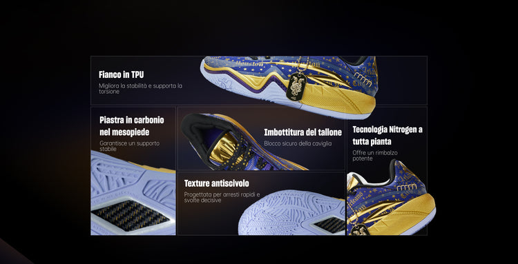 La tomaia presenta nomi di città intarsiati che ripercorrono ogni capitolo del percorso di Kyrie.