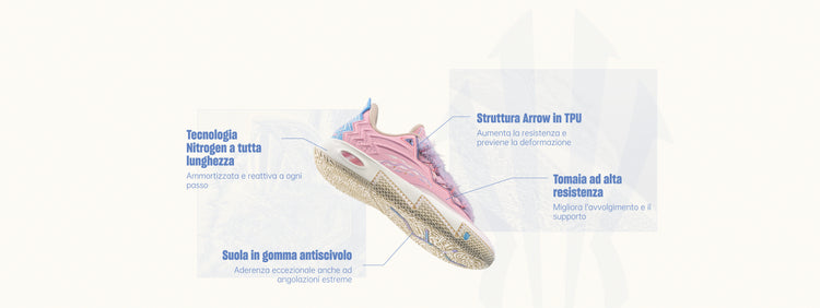 La tomaia rosa richiama l’innocenza dell’infanzia, mentre le fiamme blu violacee catturano la scintilla luminosa che Azurie porta nel mondo di Kyrie.
