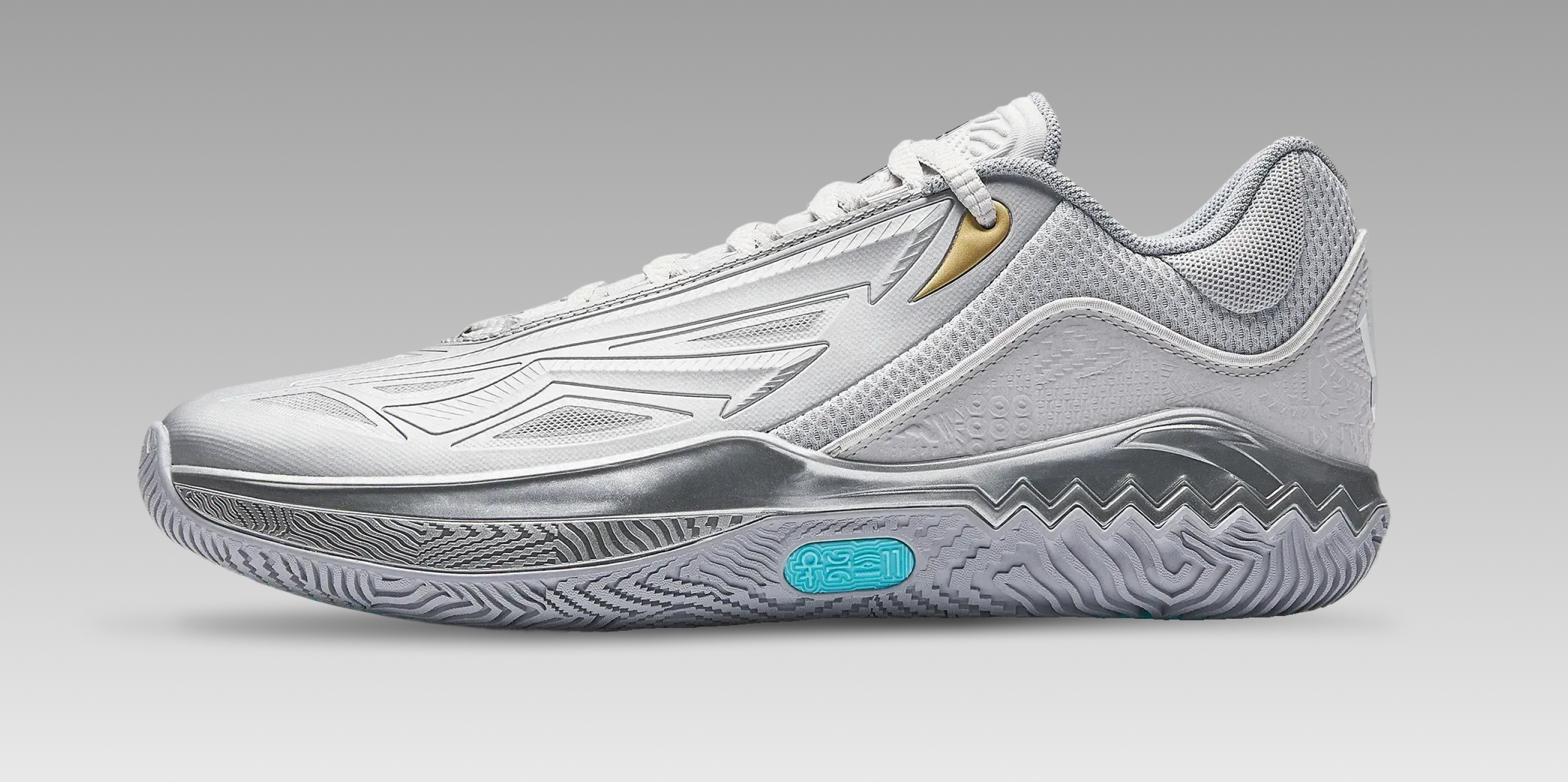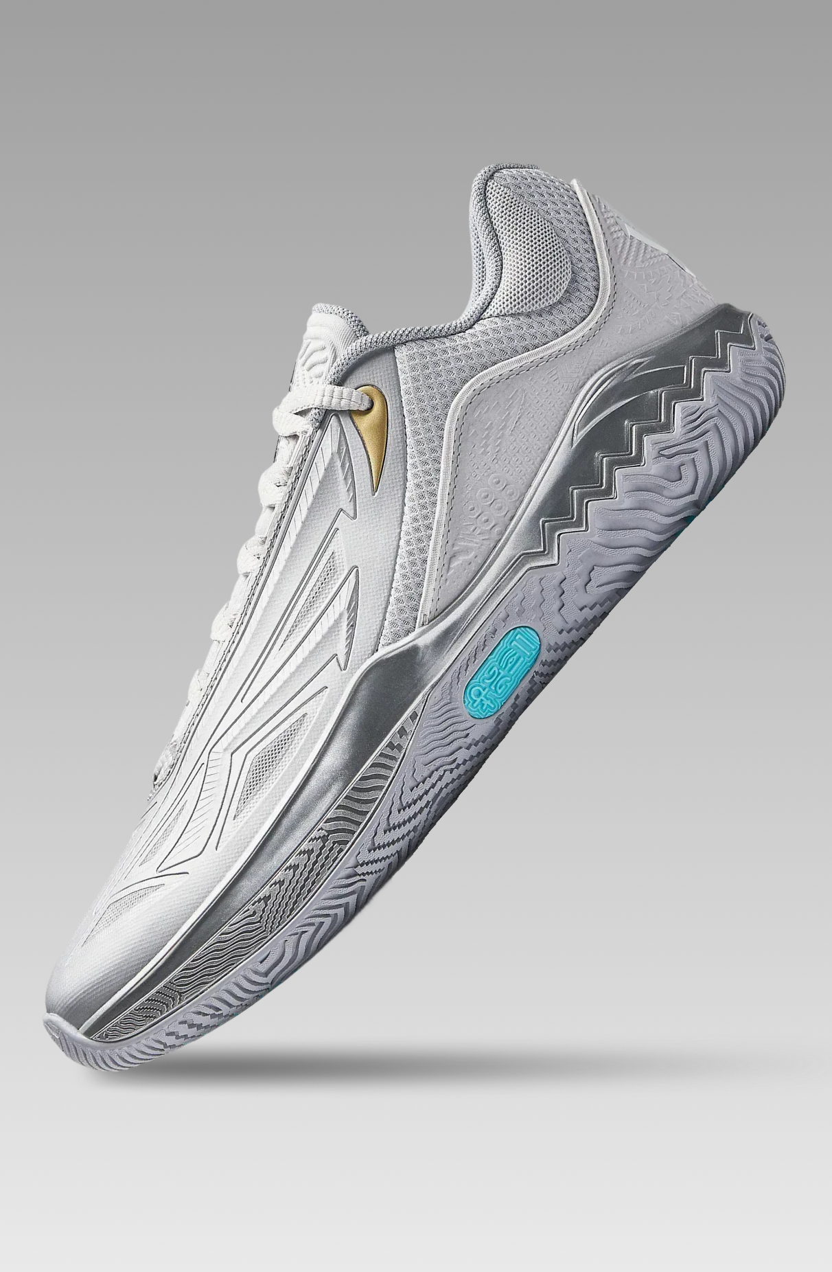 Turquoise-blue midsole shimmers like starlight on silver, combining bold style with precise, agile court performance.