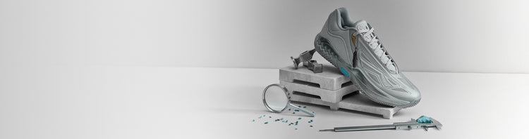 Liquid silver upper inspired by naturally oxidized metal, with subtle hammered textures that capture handcrafted precision.