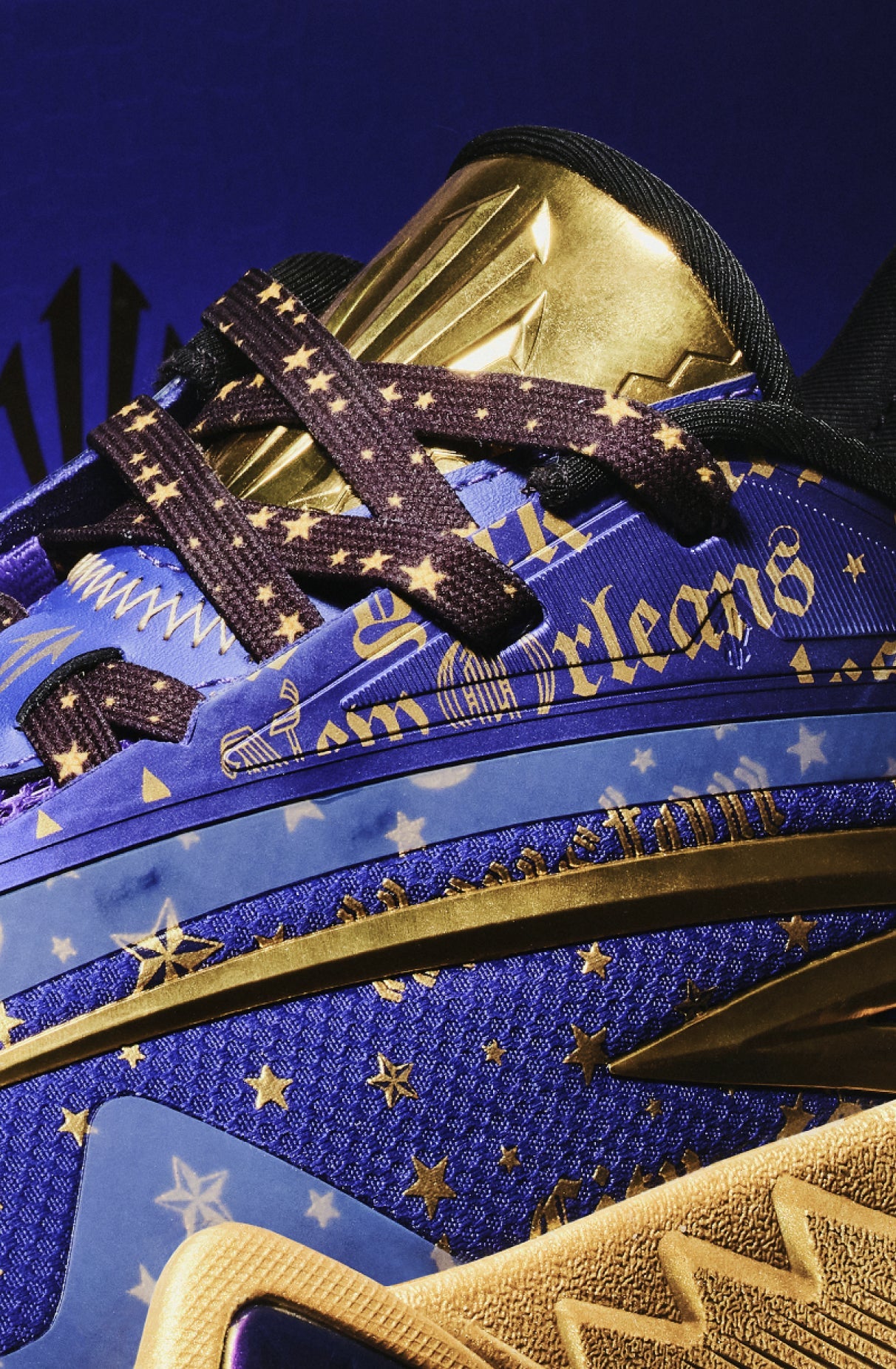 The shoe is covered in purple & gold. Honoring the game, KAl's mentor, and the city draped in purple & gold.